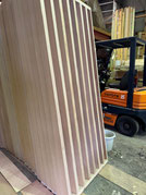 ・連日の猛暑で工場は亜熱帯のようでしたが棟梁・業者の協力でスリットパネル完成・納品しました。感謝です。